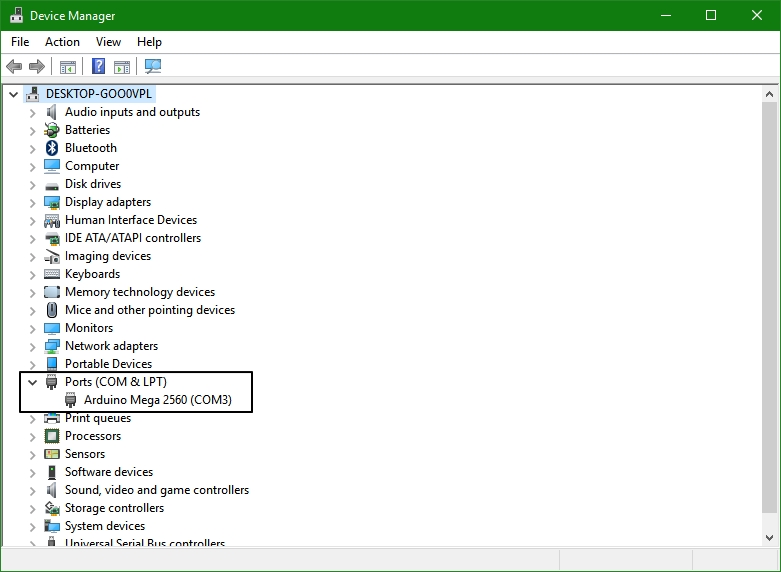 arduino = serial.Serial(com_port)সিরিয়াল ক্লাস দিয়ে Serial টাইপ অবজেক্ট তৈরি করলাম ও ইনপুট প্যারামিটার দিলাম আমার পিসির যে পোর্টে Arduino কানেক্টেড হয়েছে। অর্থাৎ আমার পিসিতে কানেক্ট হয়েছে COM3 তে, আপনার পিসি যদি উইন্ডোজ হয় তাহলে নতুন আর্ডুইনো IDE ওপেন করেই দেখতে পারেন, অথবা Device manager > Ports এ গেলেও দেখতে পাবেন (আর্ডুইনো অবশ্যই কানেক্টেড থাকতে হবে)
