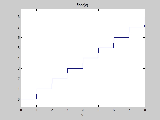 ezplot(sqr, [0, 8]);ছবি থেকে দেখা যাচ্ছে সিগনালটিকে 8 ভাগ করা হয়েছে! তারমানে 3-bit ADC Channel = 2^3 = 8 ভাগ বা স্টেপস।
