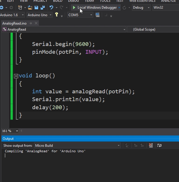 pinMode(potPin, INPUT); //Sensors are always set as INPUT