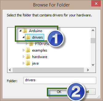 Arduino Folder টি খুঁজে বের করে Driver ফোল্ডারটি সিলেক্ট করে OK দিন: