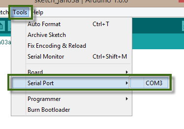এবার Tools > Serial Port > COMX [Device Manager এর Port থেকে দেখে নিতে পারেন আপনার আর্ডুইনো কোন Port এ আছে]